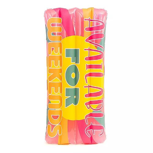 Have yourself a little pool R&R with an Inflatable Body Raft! This brightly colored raft features the headline "Available For Weekends."