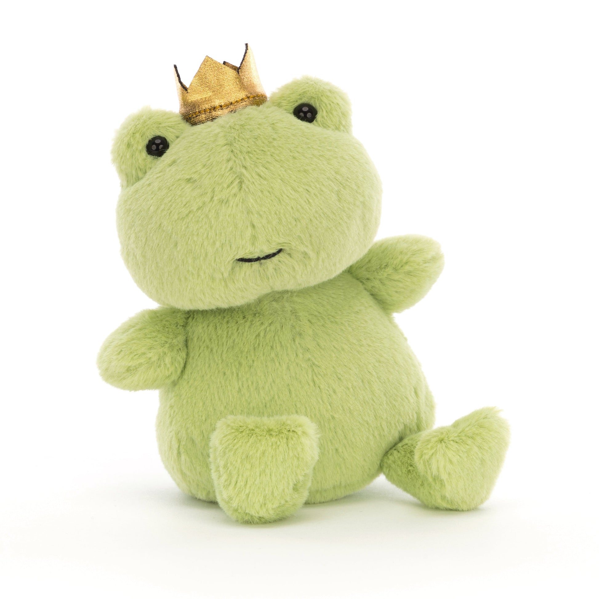 Crowning Croaker Green is an absolute amphibi-boss! This kiwi cutie is the ruler of the pond, with zingy green fur, a tubby tum, diddy paws and heart-shaped feet. Our froggy friend has bright bobble eyes and a rather splendid soft gold crown - a total lilypad legend!