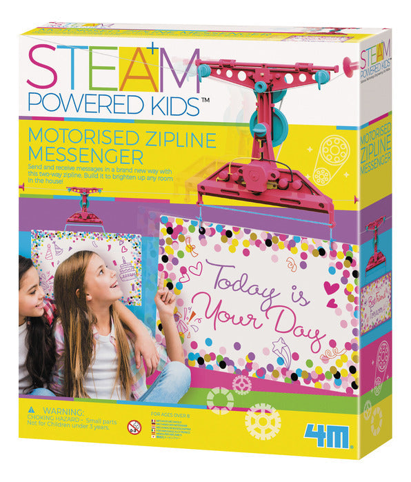 Send and receive messages in a brand new way with this two-way zipline. Build it to brighten up any room in the house! You can send personalized messages with the cards provided or make a trendy transporter from scratch. Includes all parts needed to construct zipline and detailed instructions. Recommended for age 8 years and up.