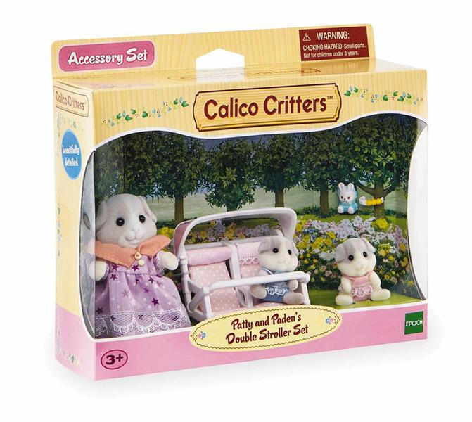 Patty and Paden's Double Stroller Set Penny can take her twins out for a stroll in the park with this double stroller! Includes: Mother Guinea Pig Penny, Twins Patty and Paden, double stroller with rotating wheels and adjustable canopy cover, baby ring to